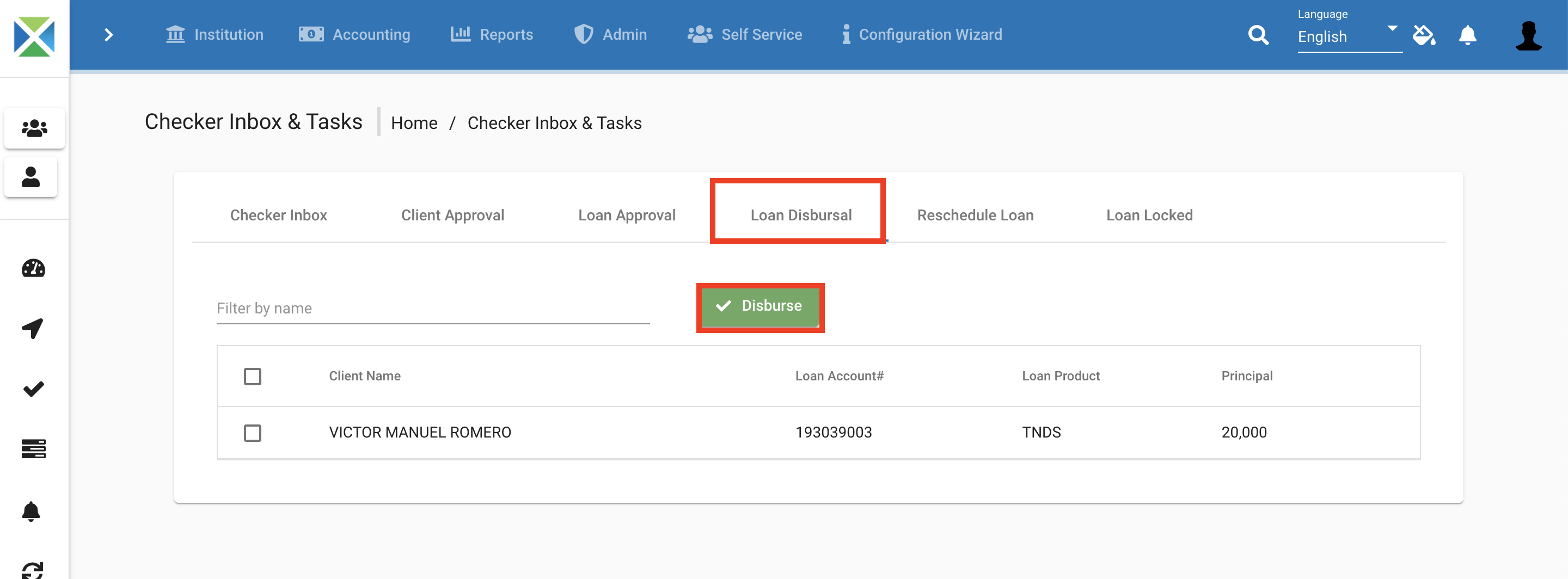 Then click on 'Loan Disbursal' to see the list of loans which are not yet disbursed.
