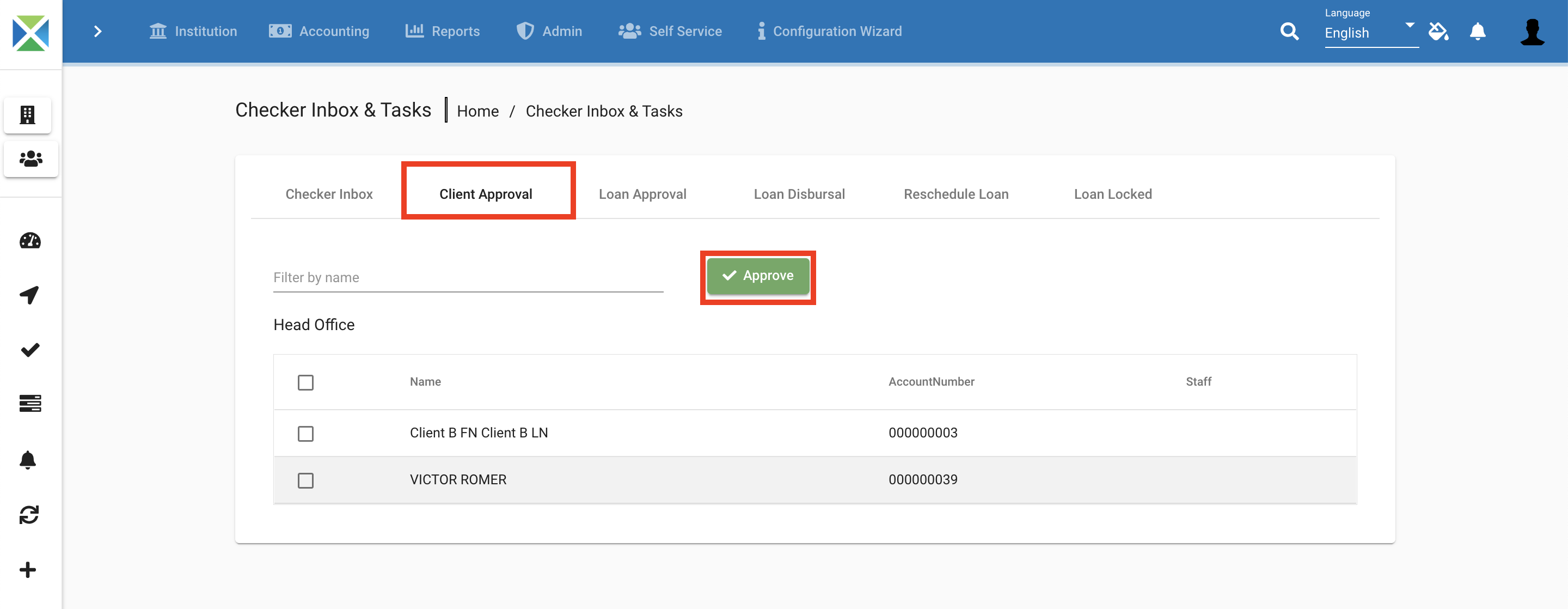 Once you click it, the following window will appear showing pending tasks for checker inbox, clients and loans.